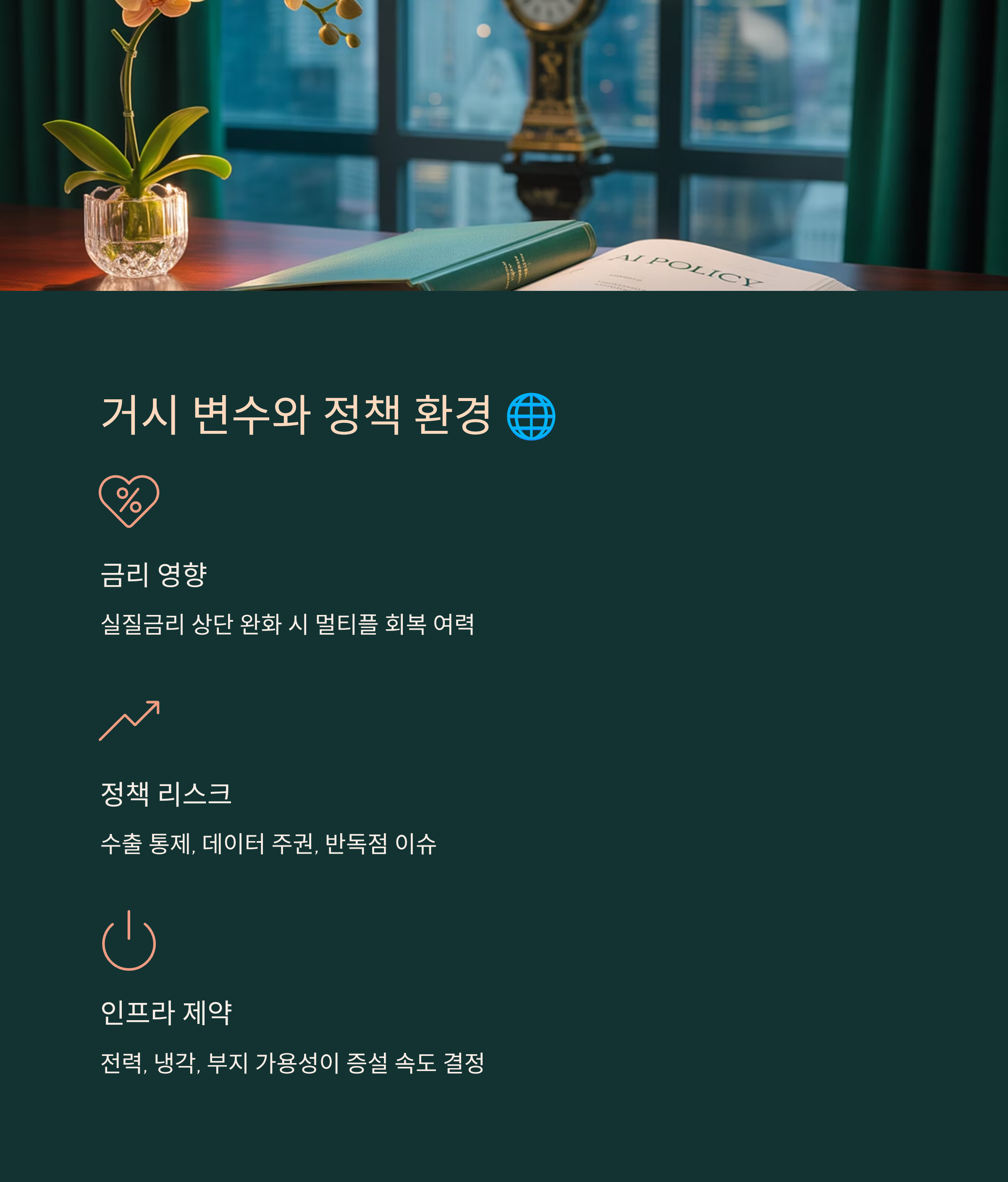 금리는 AI 성장주 가치평가의 분모에 직접 영향을 줘요. 실질금리 상단이 눌리거나 장단기 금리차가 정상화되면 멀티플 회복 여력이 생겨요. 반대로 인플레이션 재가열과 정책 불확실성이 커지면 프리미엄 섹터일수록 변동성은 확대돼요.