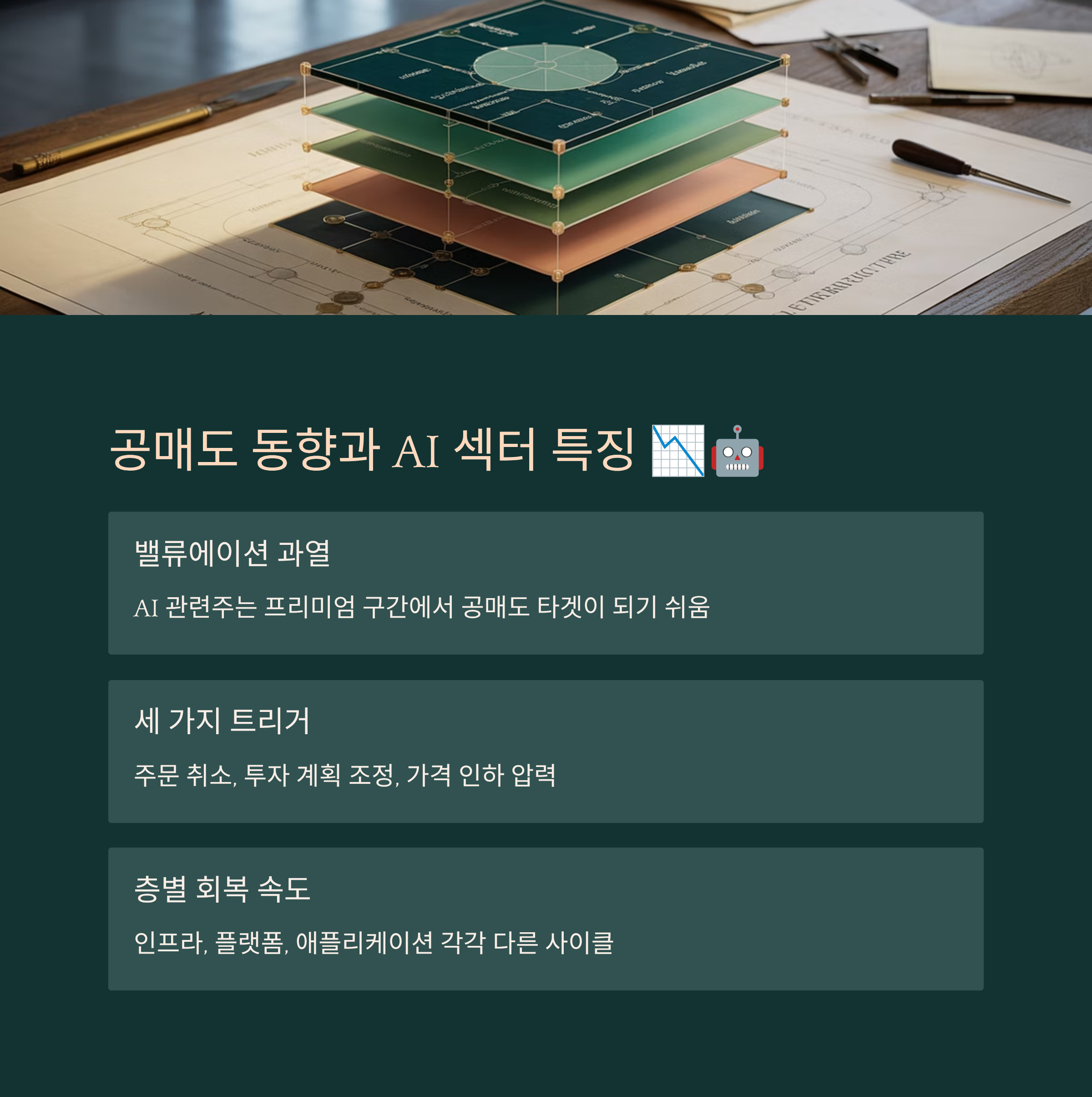 AI 관련주는 스토리의 크기만큼 추정치 분산이 크고, 밸류에이션이 프리미엄 구간에서 형성되기 쉬워요. 이런 조건은 공매도 세력에게 유리한 필드를 제공해요. 기대가 앞서던 구간에서 단기 실적 둔화나 가이던스 하향이 나오면 숏 포지션이 빠르게 붙고, 수급 공백이 생기면 하락 탄력이 커지는 패턴이 나타나요.