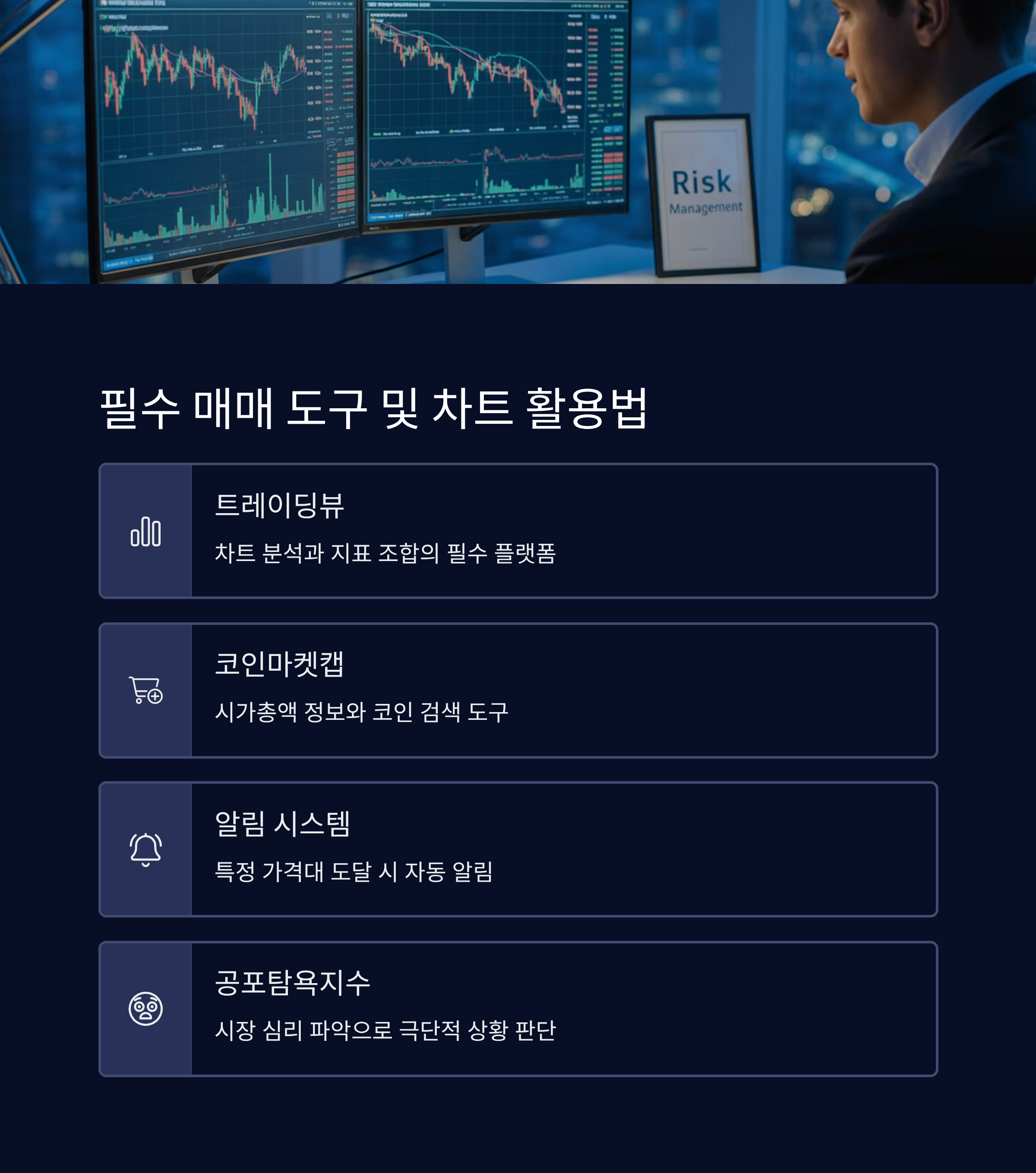 도구는 매매의 무기예요. 검을 쓰는 사람, 활을 쓰는 사람 모두 있지만 결국 어떤 무기를 쓸지, 어떻게 쓸지는 자신이 정해야 해요. 시작은 기본적인 툴에서, 익숙해지면 자동화 봇이나 API 트레이딩까지 도전해봐도 좋아요. 💻✨