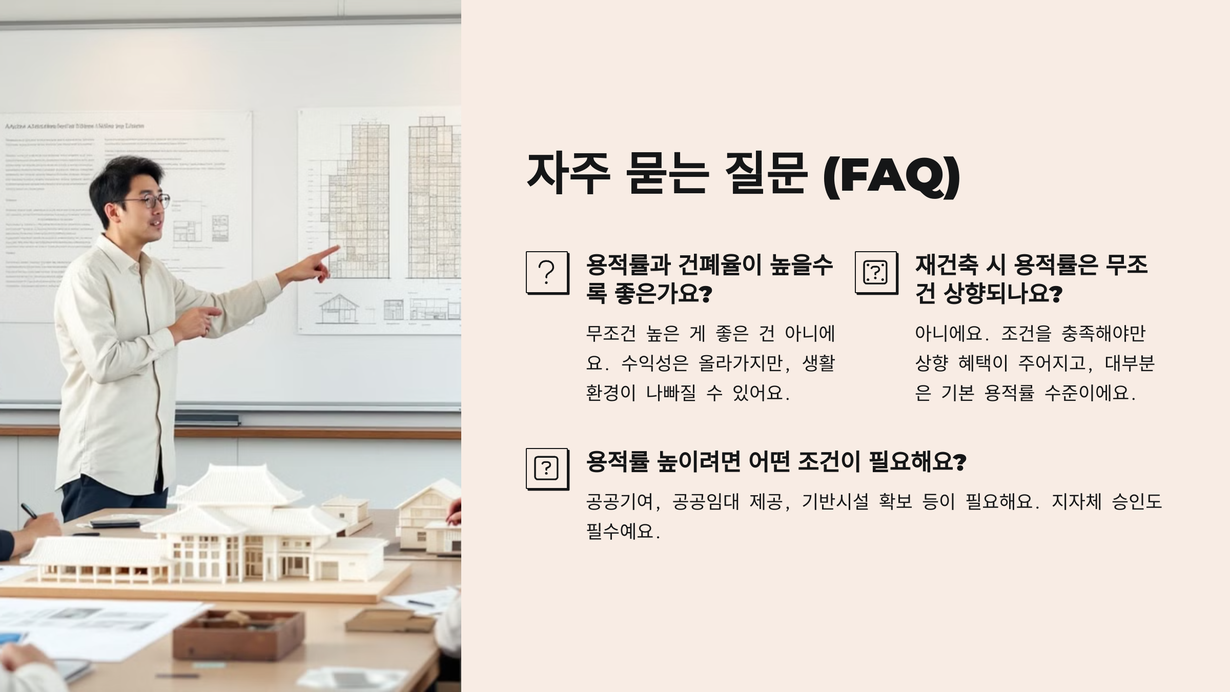 이제 진짜 많이 궁금했던 부분이죠? 😊 자주 물어보는 용적률·건폐율 관련 질문들을 아래 FAQ에서 정리해볼게요!