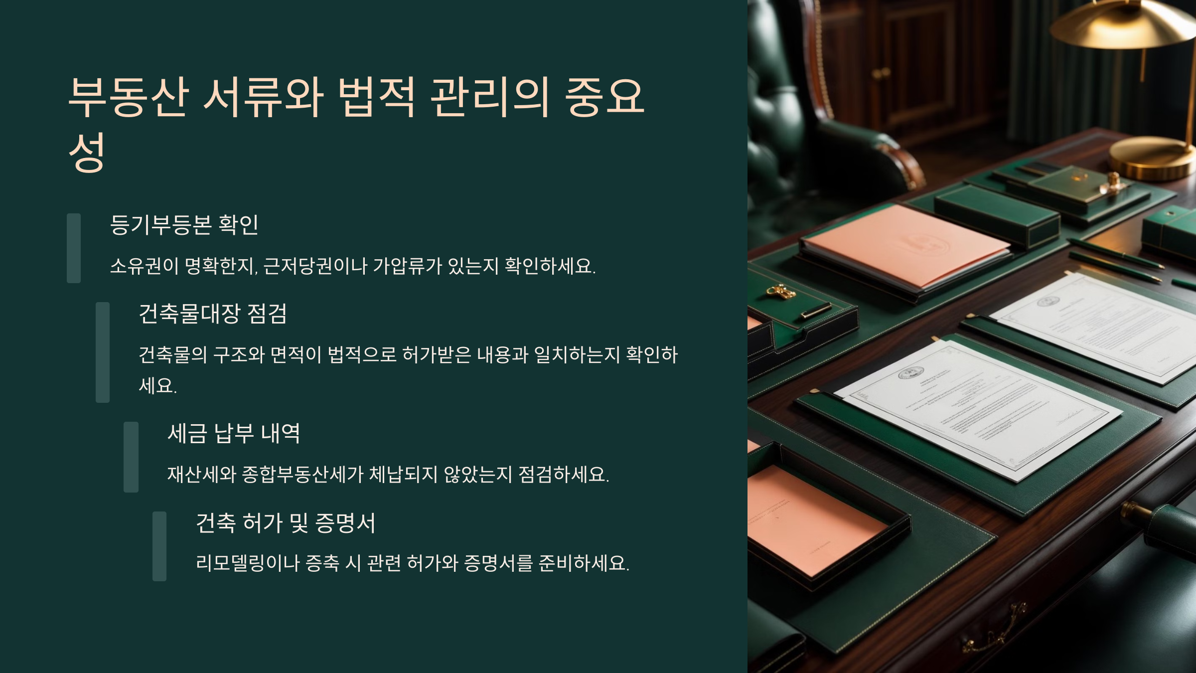 이제 **부동산 서류와 법적 관리**가 집값에 미치는 영향을 알아볼게요! ⬇️⬇️⬇️