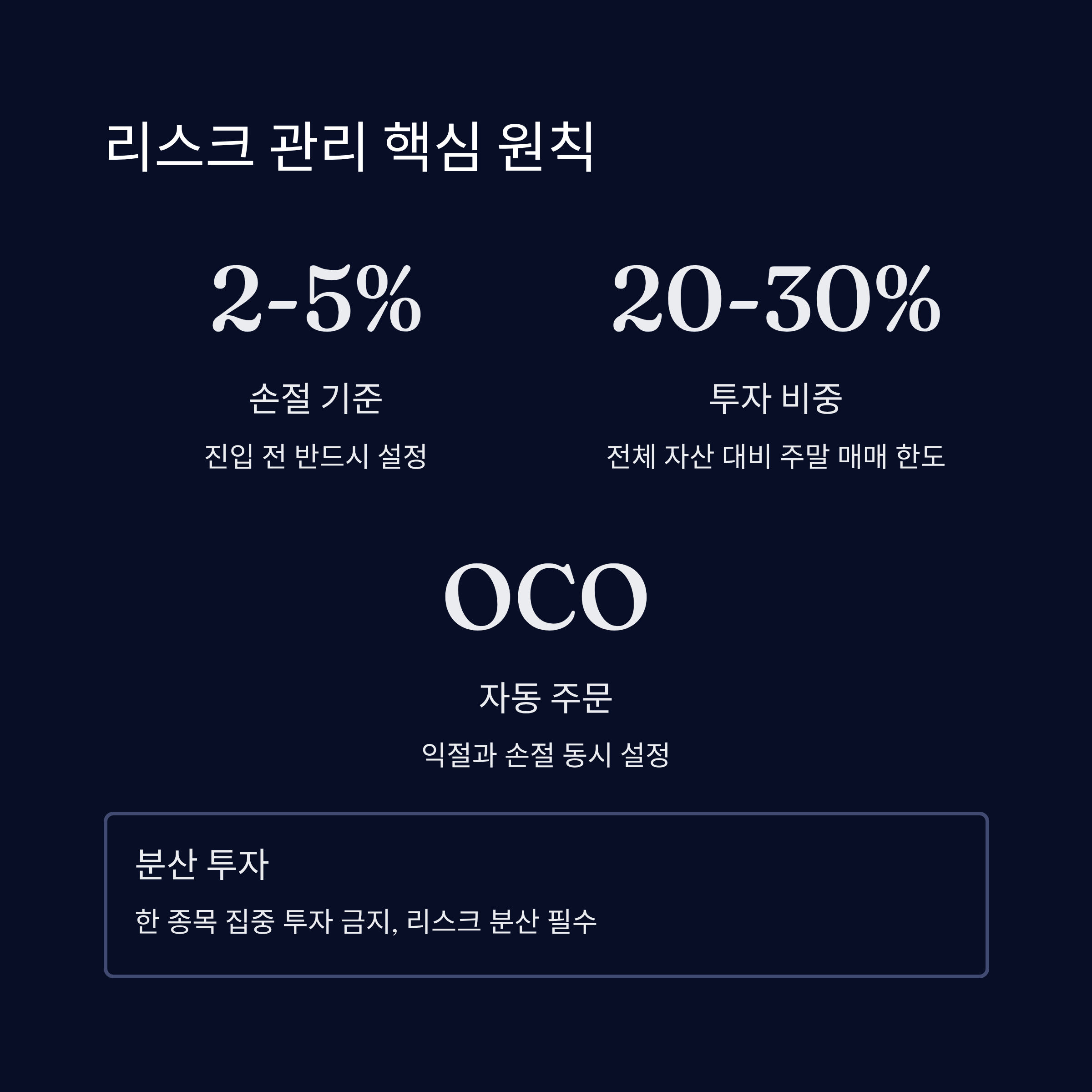 손절 기준 | -2% ~ -5% | 진입 전 설정 필수 |