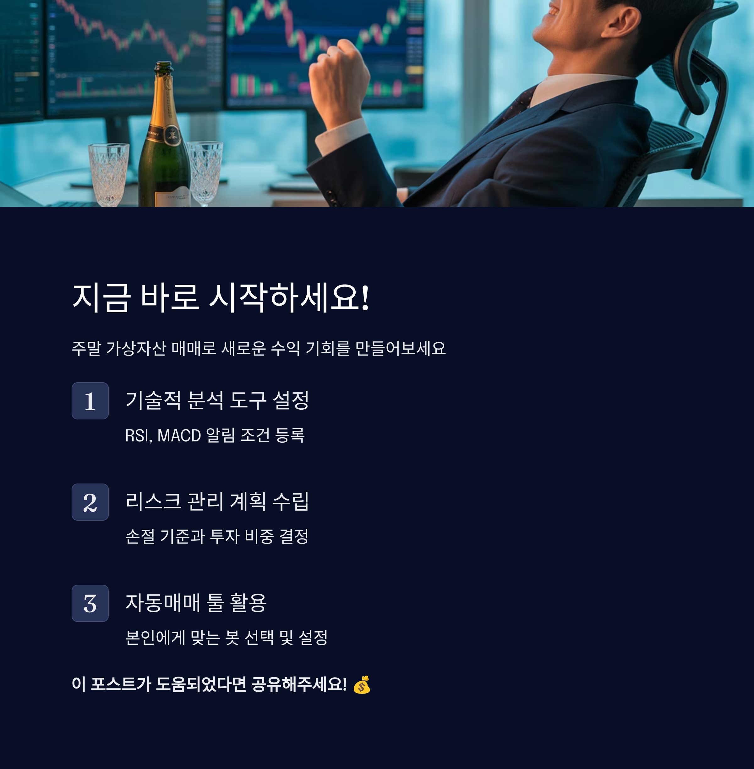 자동매매는 직장인의 시간과 감정을 아껴주는 비서 같은 존재예요. 너무 의존하진 말고, 나만의 전략을 녹여내는 것이 핵심이에요 😉