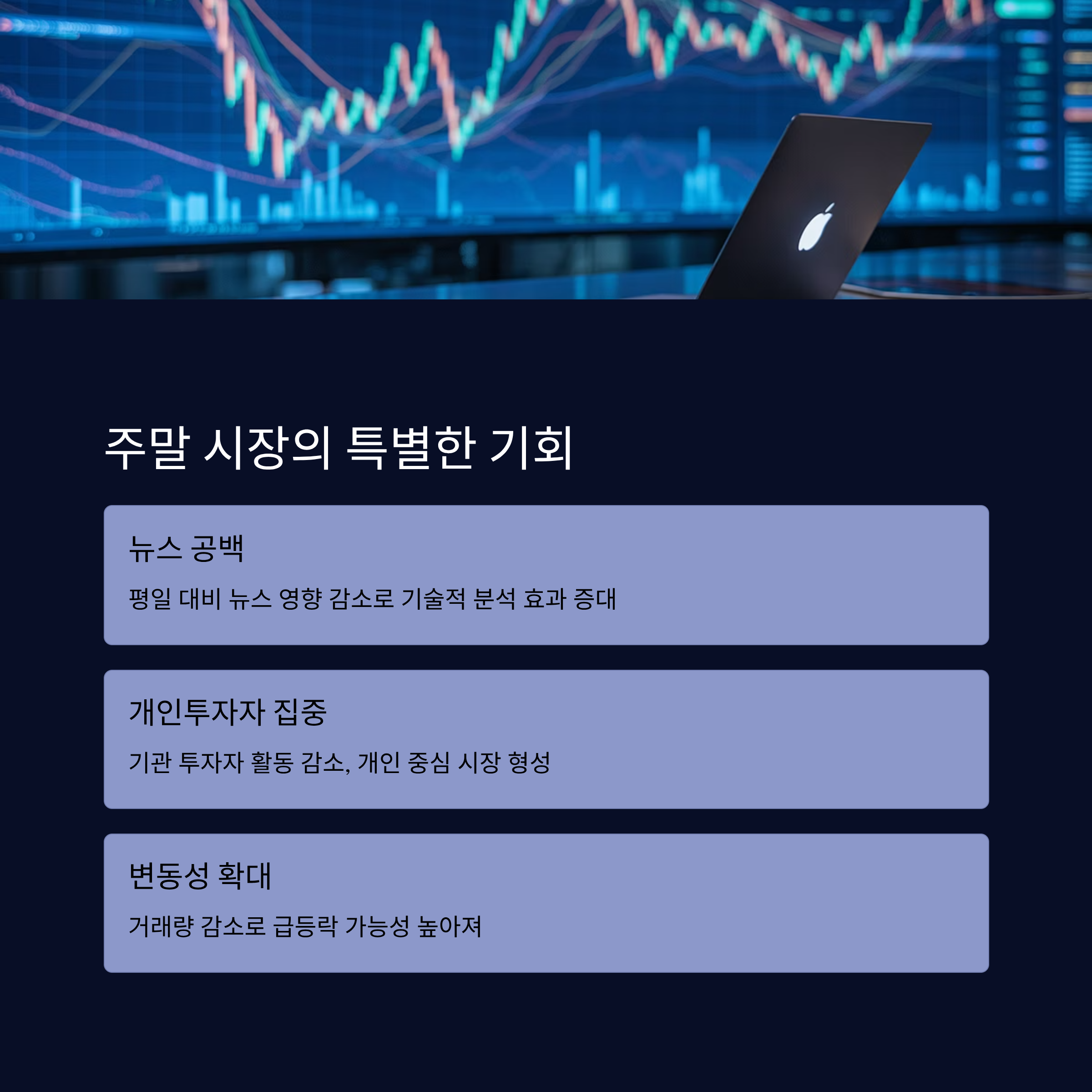 또한, 주말에는 기관 투자자나 전문 트레이더들의 활동이 줄어드는 경향이 있어요. 이로 인해 개인 투자자 중심의 시장이 형성되며, 갑작스러운 급등락이 발생할 가능성도 높아진답니다. 직장인 투자자에게는 이 점이 오히려 유리할 수도 있어요.